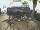 Starting with a bare frame, he used (Rustoleum brand) Satin Black, like the factory did, cut with lacuqer. The factory did that to aid in drying time. The inner fenderwells were resprayed engine bay side with Semi-Gloss, and the wheel side was sprayed with High Temperature Barbecue Black.
