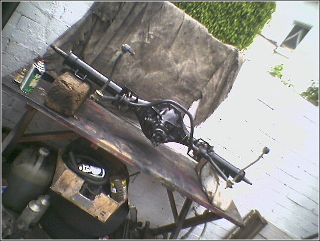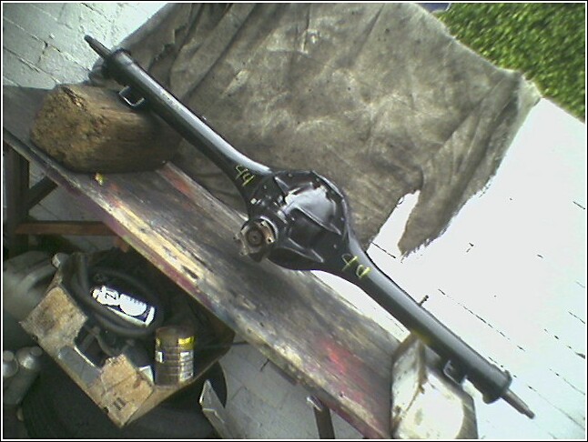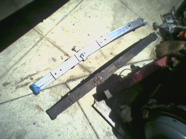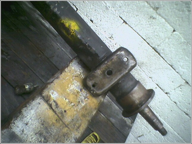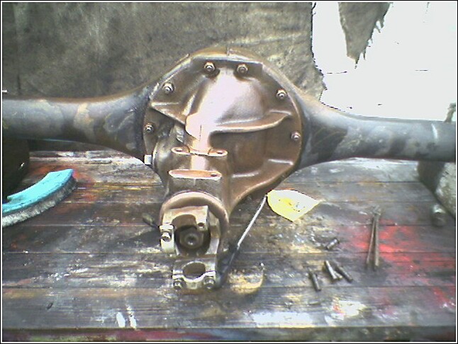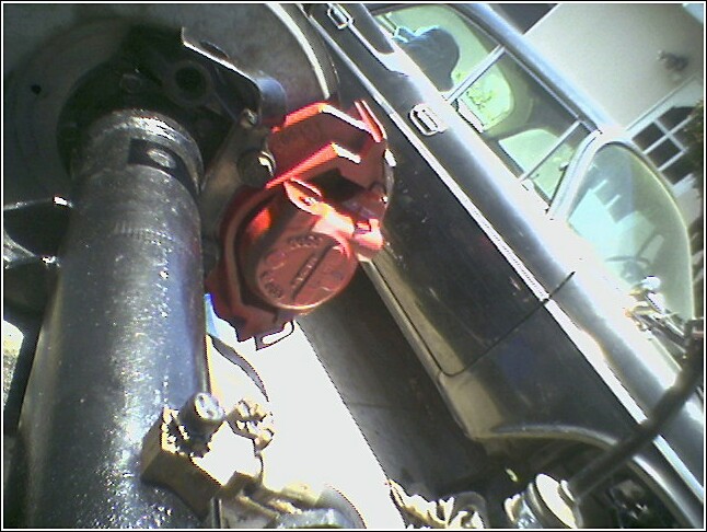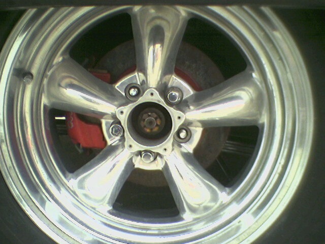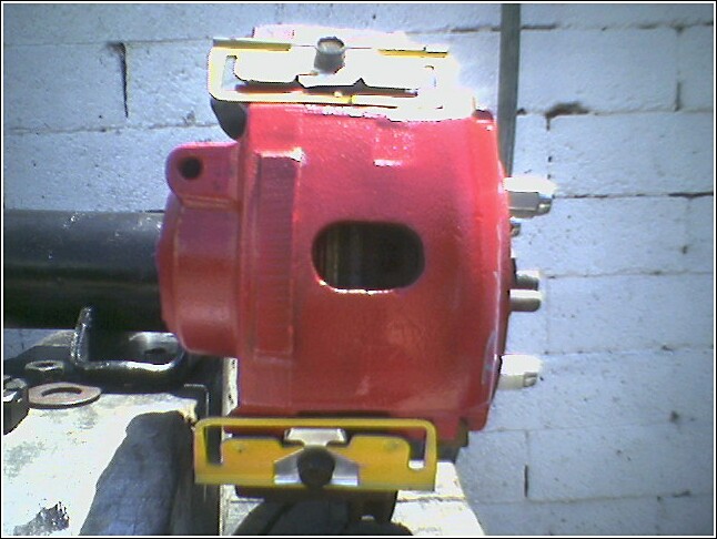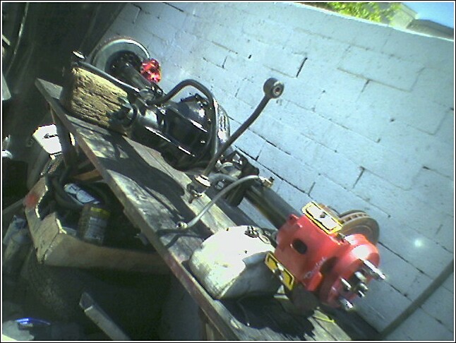 The rear discs were off a '76 Imperial. He did some drilling, grinding, and filing on the caliper mounts and the rear to make it all fit.